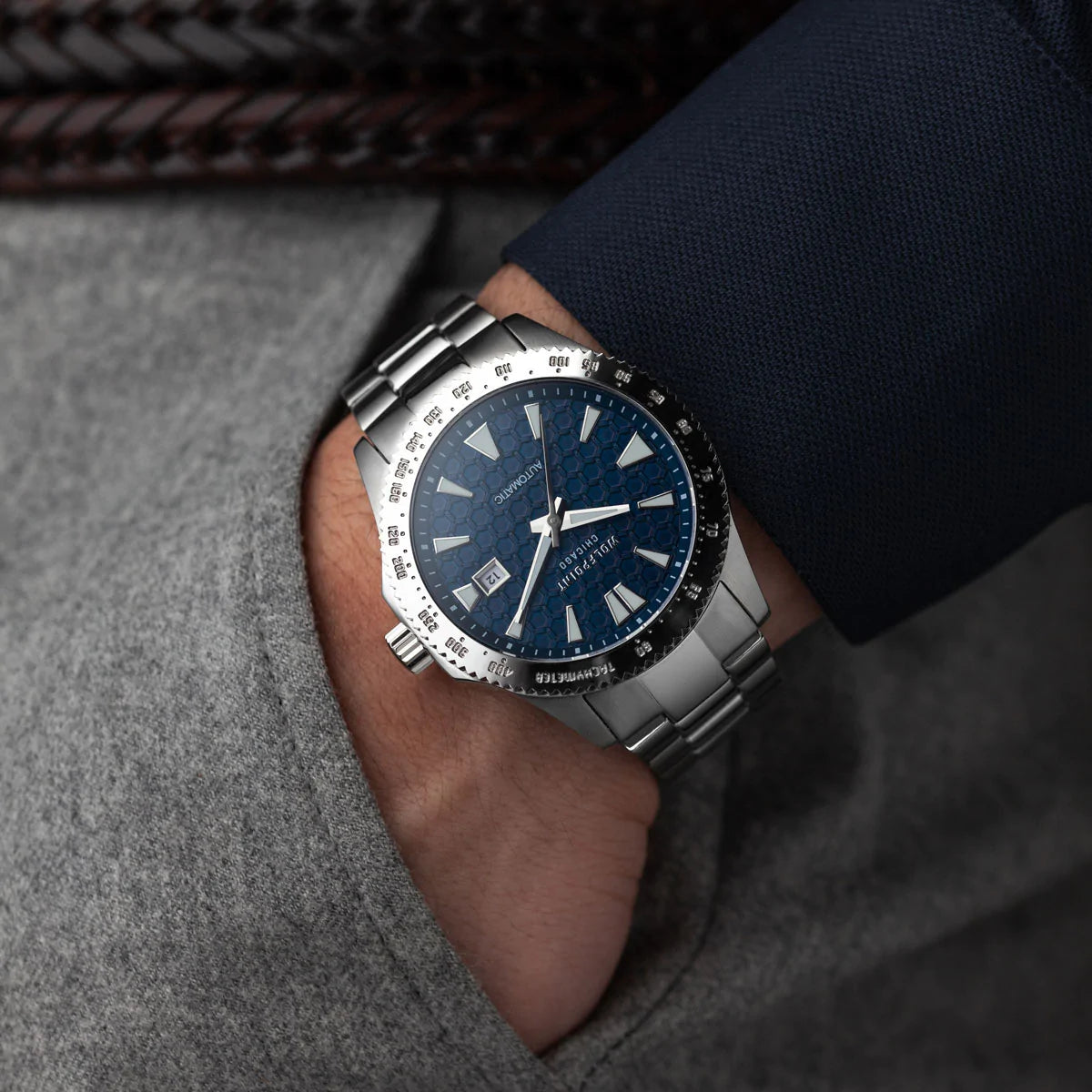 Developed by one of the historic automatic movement manufactures, and known for its unwavering reliability, this Sellita SW200 marries precision and reliability in perfect harmony. Powered by your every move, with 26 jewels to reduce friction, 38 hour power reserve, and 28,900 vibrations per hour, this self-winding movement ensures effortless timekeeping with every tick. Plated in nickel-phosphorus to stop magnetic friction.