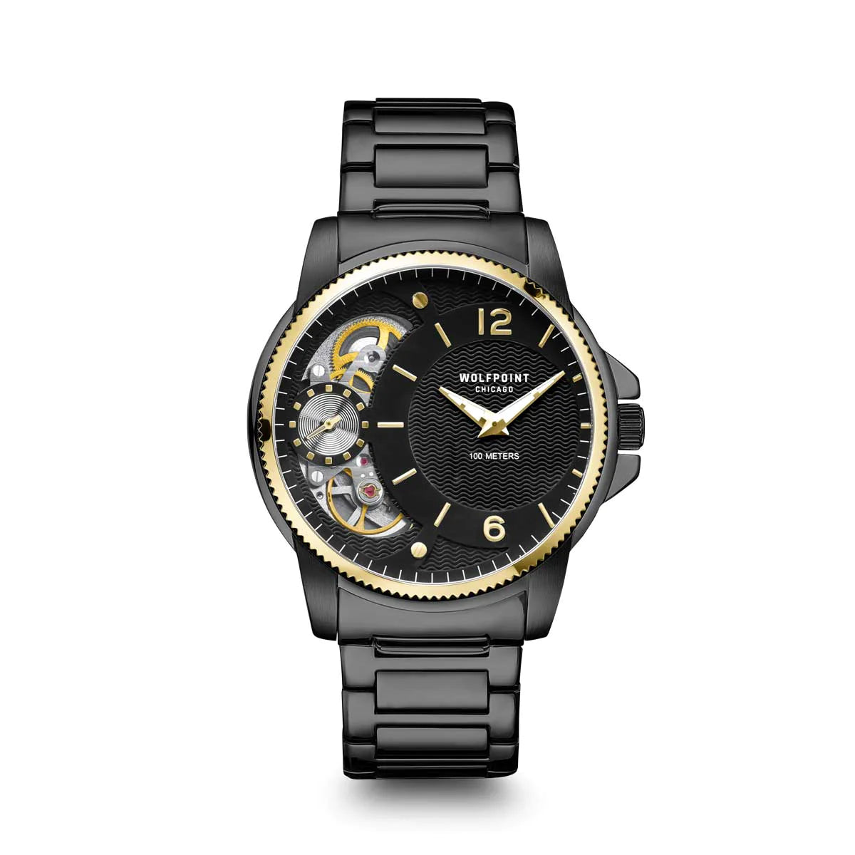 Set out to explore and challenge the boundaries of watchmaking, the first ever Wolfpoint timepiece to include two movements in a watch. A timepiece that fuses elements of mechanical and quartz movement. Each timepiece features Wolfpoint's signature enamel dial, scratch-resistant sapphire crystal, and a finely polished 316L stainless steel case.