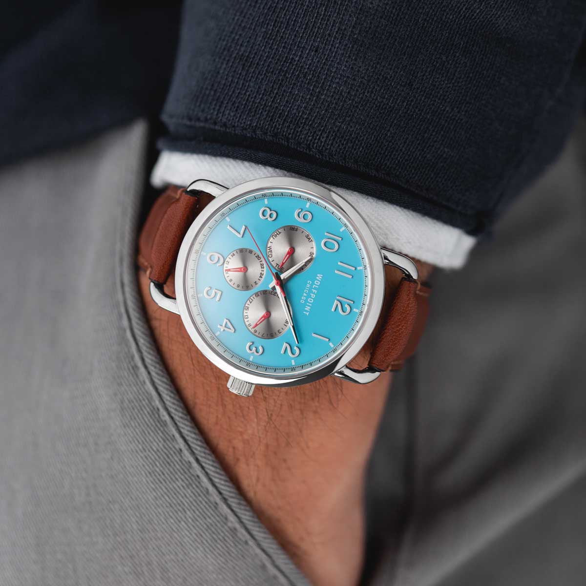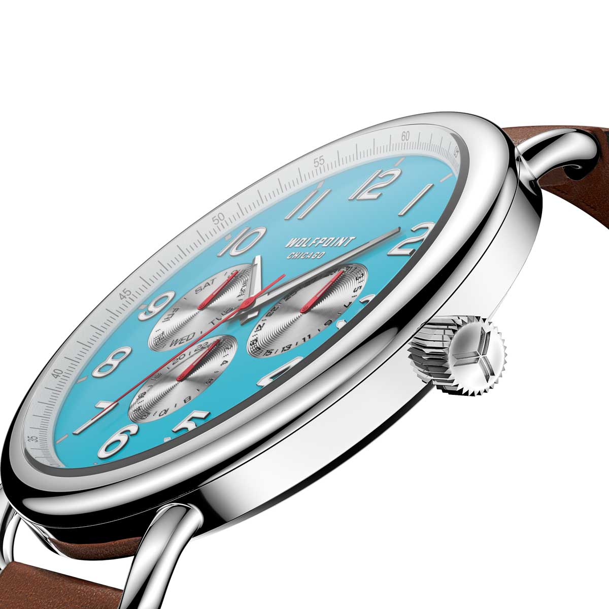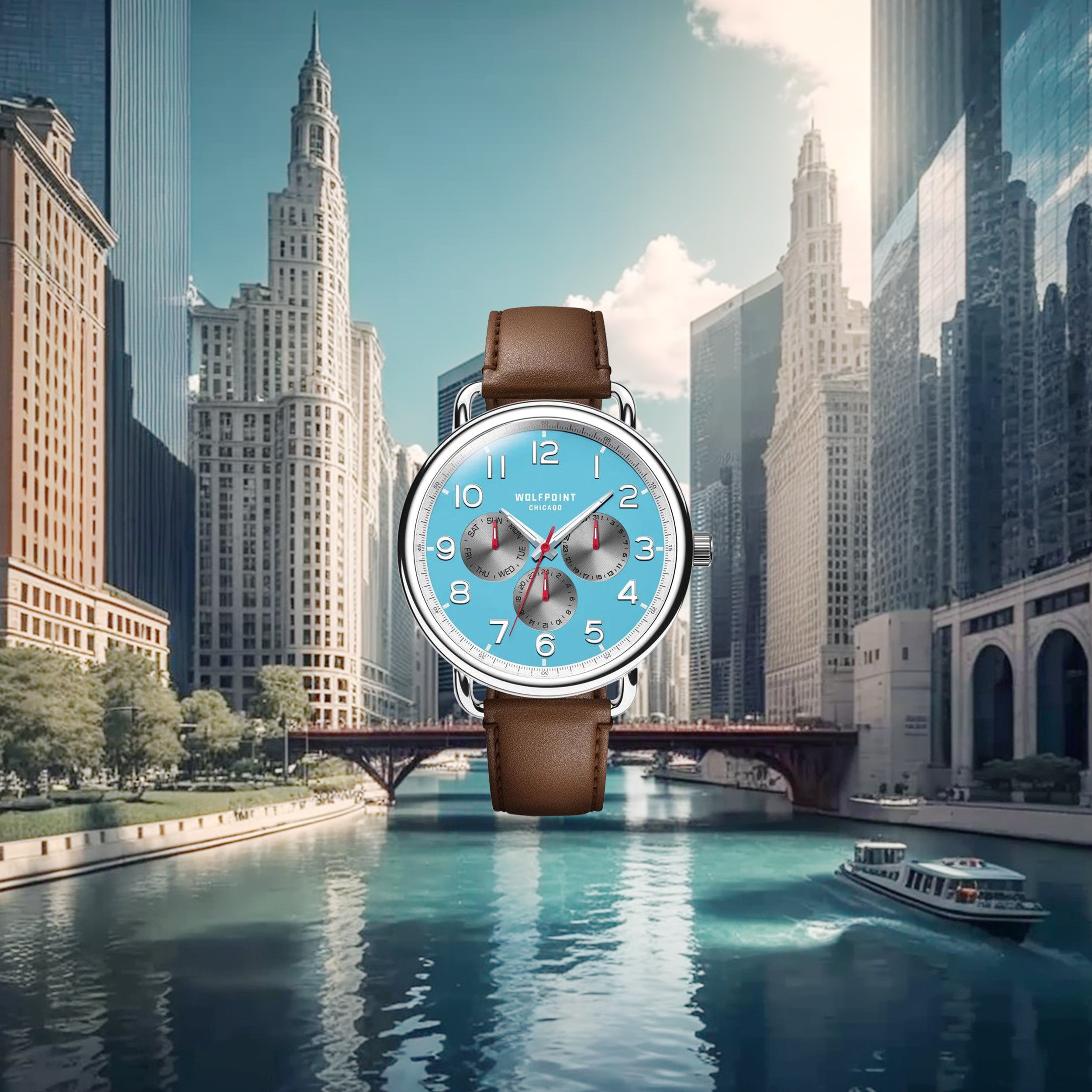 Timeless in style, this stunning polished 316L stainless steel case features a sapphire crystal for added durability and maximum scratch-resistance. The stylized caseback is adorned with an etched Wolfpoint logo for an heirloom-quality timepiece. The symbolic “Y” represents the iconic fork in the Chicago River that creates the North, South and Main branches of the waterway, bringing a piece of Chicago history everywhere you go.