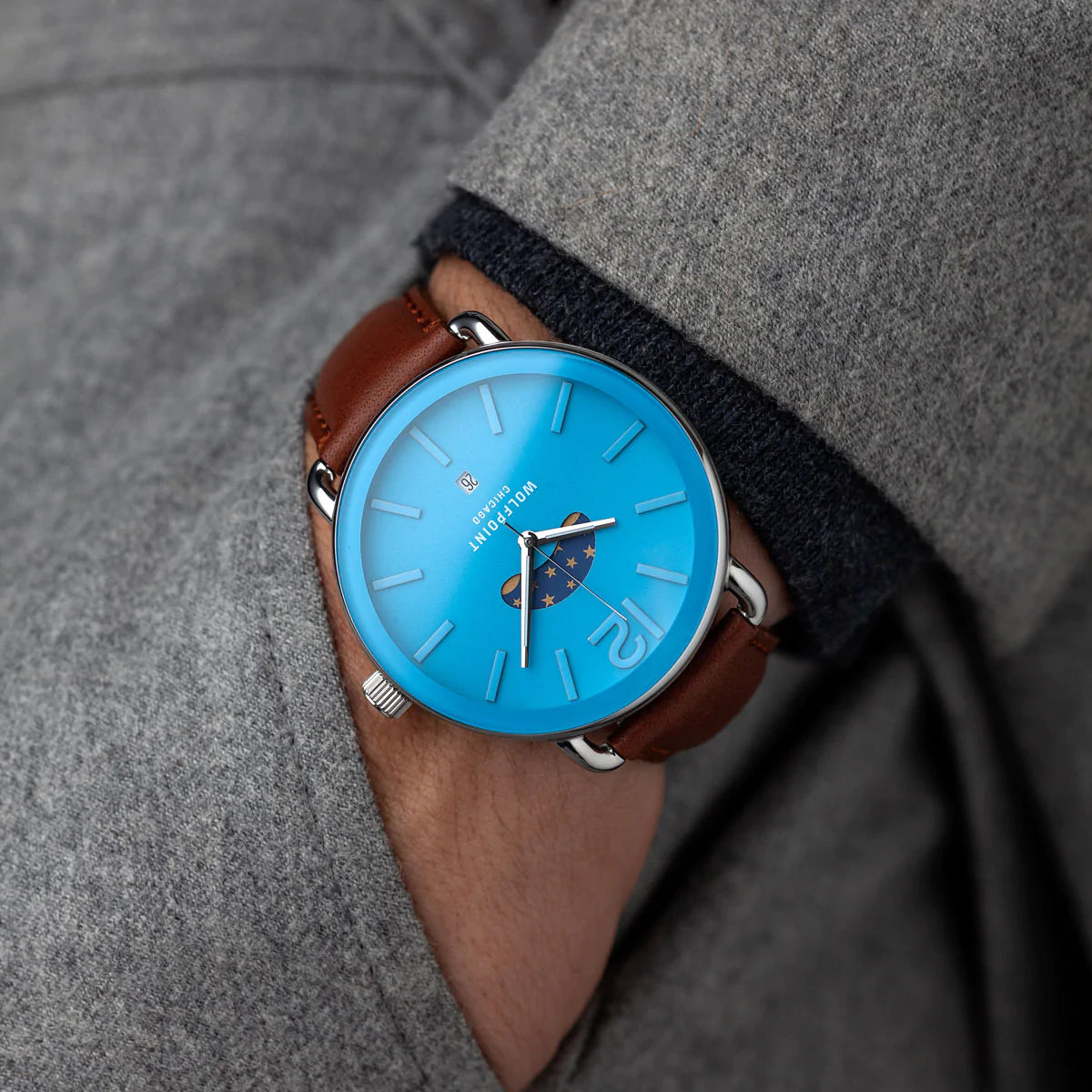 A work of public art in Millennium Park at the heart of Chicago. The sculpture, which is officially titled Cloud Gate, is one of the world’s largest permanent outdoor art installations, it weighs about 110 tons — roughly the same as 15 adult elephants. The stainless steel made monumental work was unveiled in 2004 and quickly became of the Chicago's most iconic sights. Our Moon collection bean shape moon phase window, is proudly inspired by this iconic sculpture of Chicago.