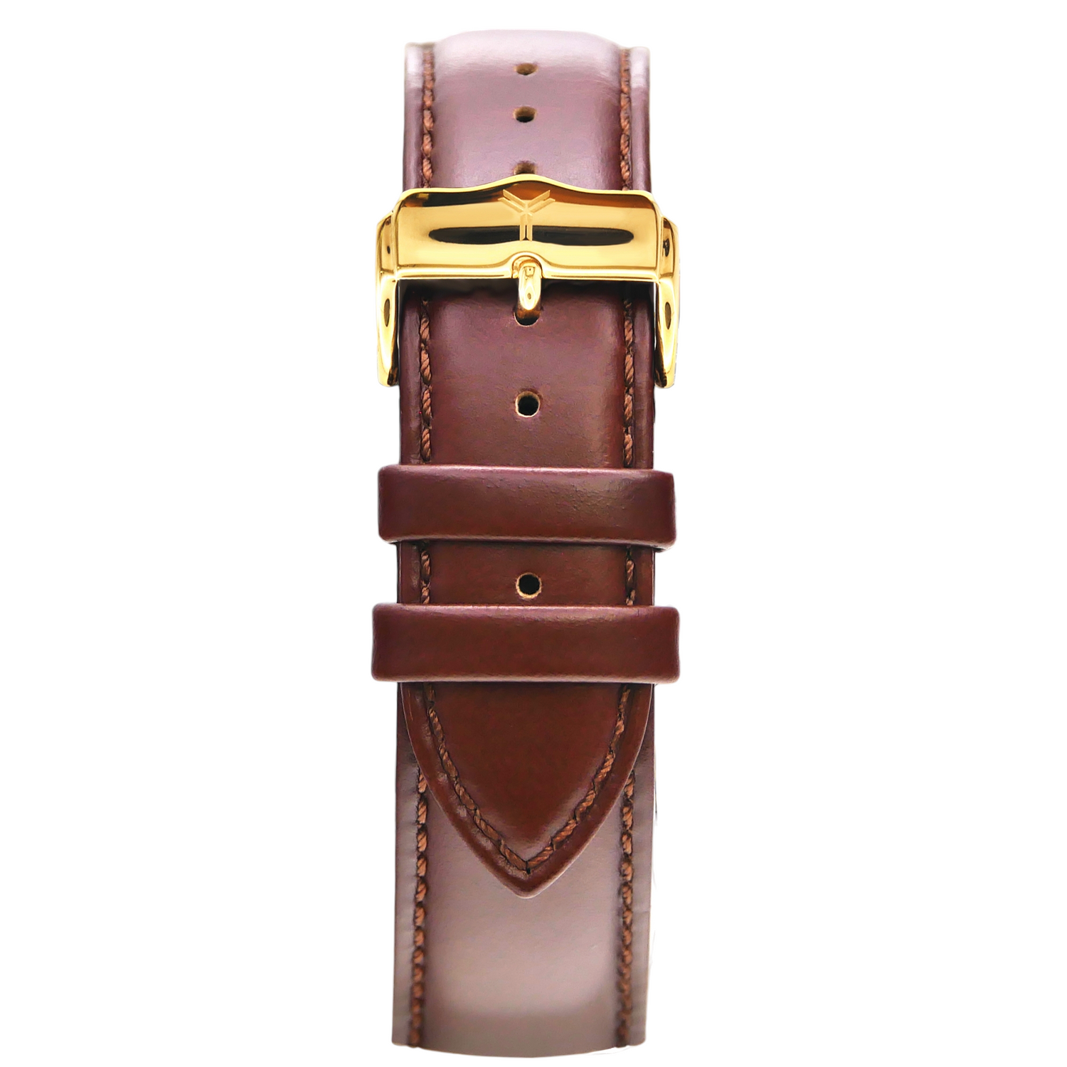 Our hand crafted American first grain leather strap offers an unparalleled blend of quality, consistency, and comfort. Bringing a glimpse of elegance to our best-selling Dual Movement collection.
