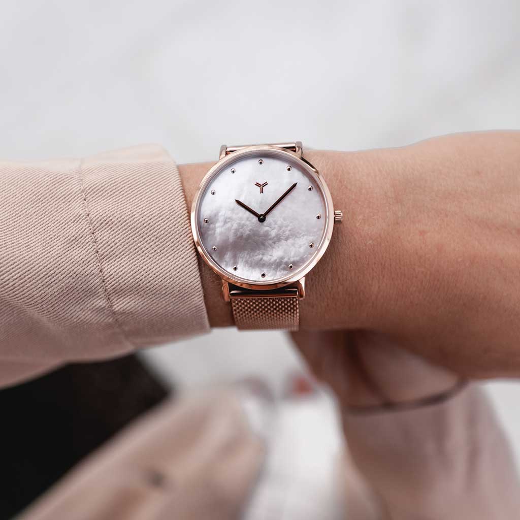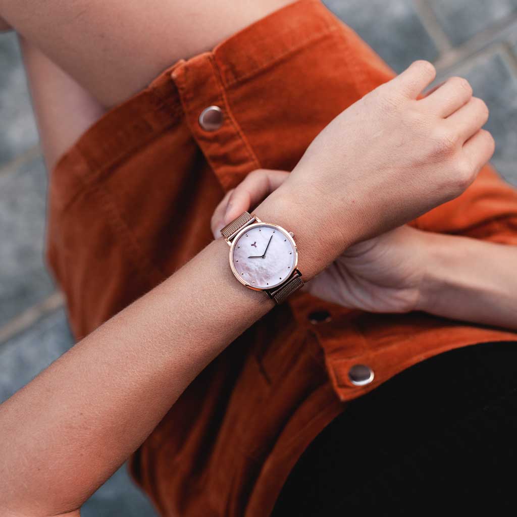 6.5mm thick and 36.5mm diameter. We engineered it to be as slim as possible. This two-hand watch can easily be the most versatile timepiece in your wardrobe, making it perfectly suited for a board meeting or Sunday brunch.