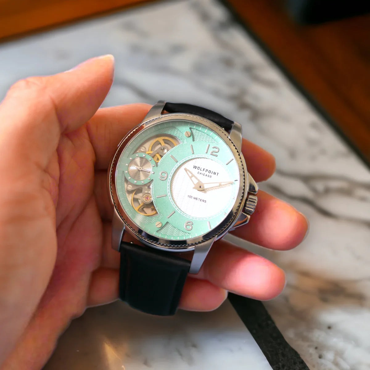 It took us six years to develop and produce the first Wolfpoint watch featuring TWO movements in ONE case. Imagine an automatic watch, but powered by a classic Japan Miyota movement.