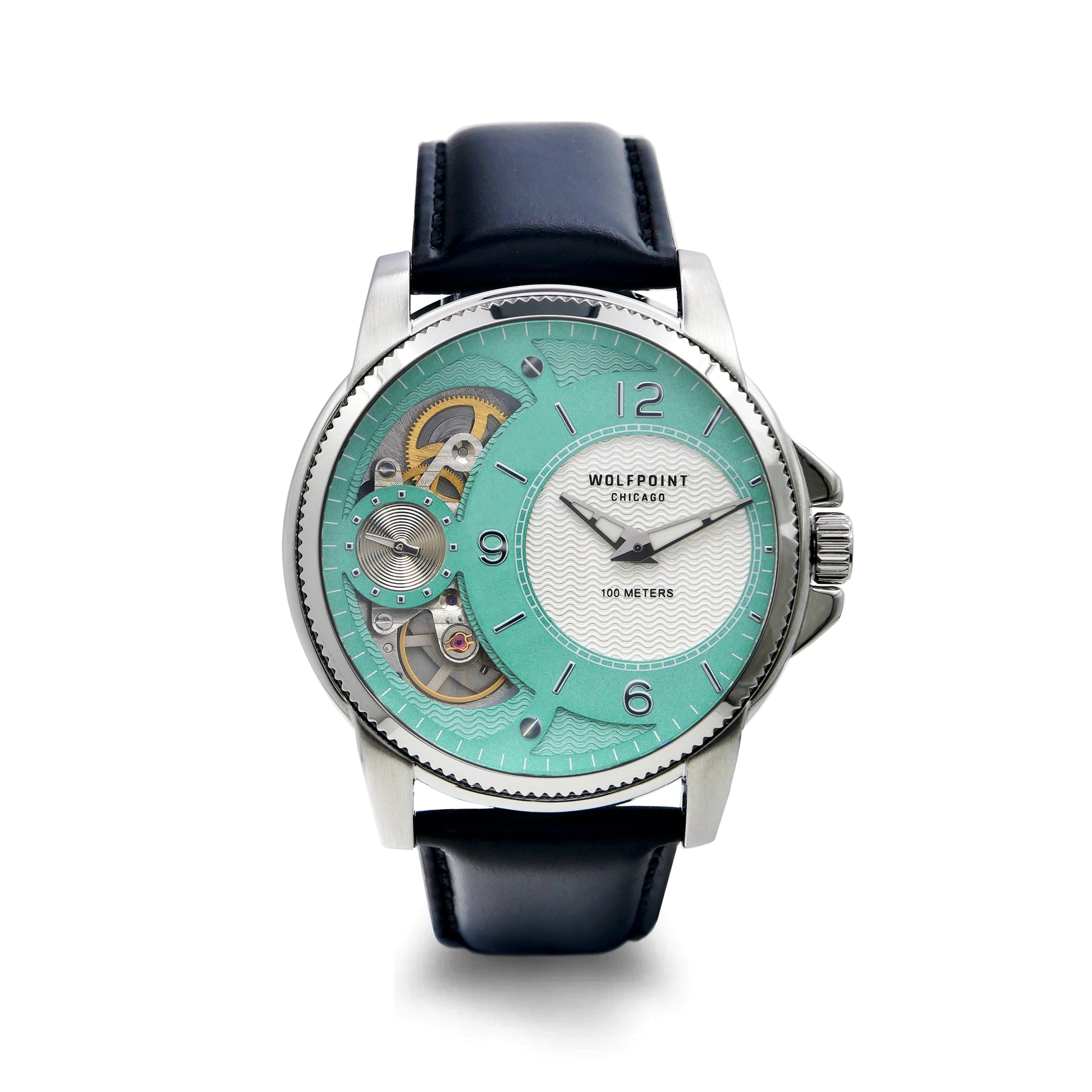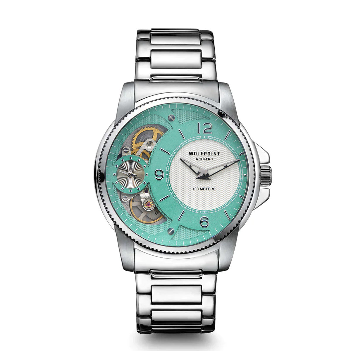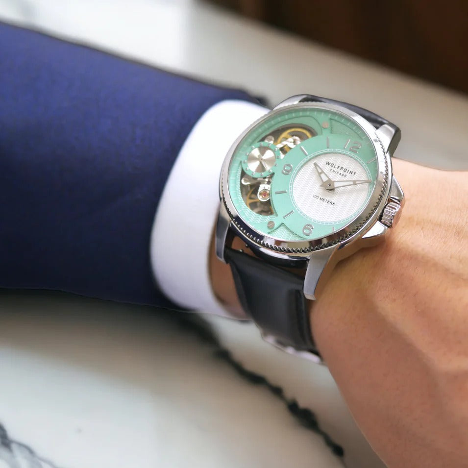 Set out to explore and challenge the boundaries of watchmaking, the first ever Wolfpoint timepiece to include two movements in a watch. A timepiece that fuses elements of mechanical and quartz movement. Each timepiece features Wolfpoint's signature enamel dial, scratch-resistant sapphire crystal, and a finely polished 316L stainless steel case.