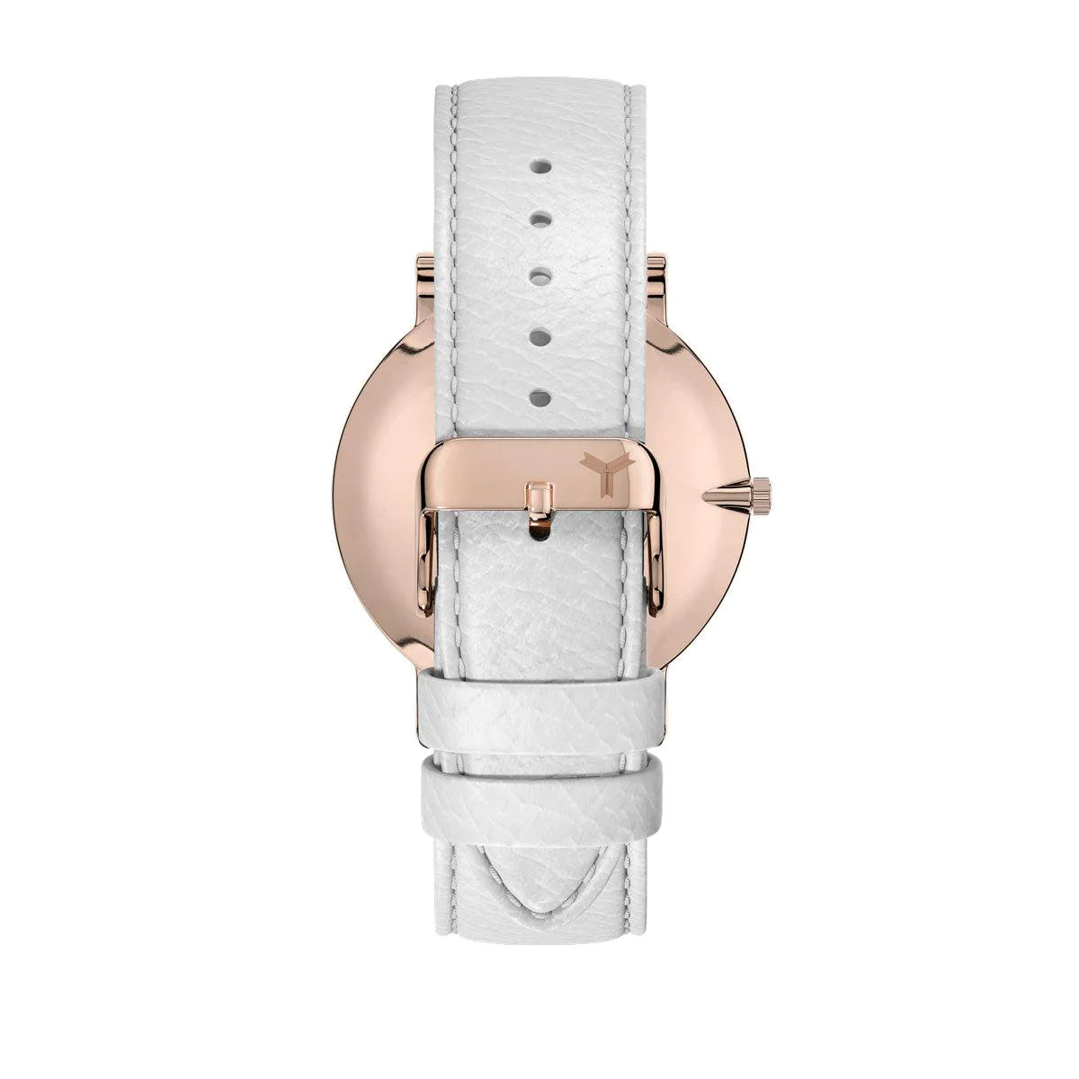 6.5mm thick and 36.5mm diameter. We engineered it to be as slim as possible. This two-hand watch can easily be the most versatile timepiece in your wardrobe, making it perfectly suited for a board meeting or Sunday brunch.