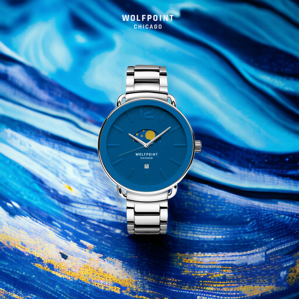 A work of public art in Millennium Park at the heart of Chicago. The sculpture, which is officially titled Cloud Gate, is one of the world’s largest permanent outdoor art installations, it weighs about 110 tons — roughly the same as 15 adult elephants. The stainless steel made monumental work was unveiled in 2004 and quickly became of the Chicago's most iconic sights. Our Moon collection bean shape moon phase window, is proudly inspired by this iconic sculpture of Chicago.