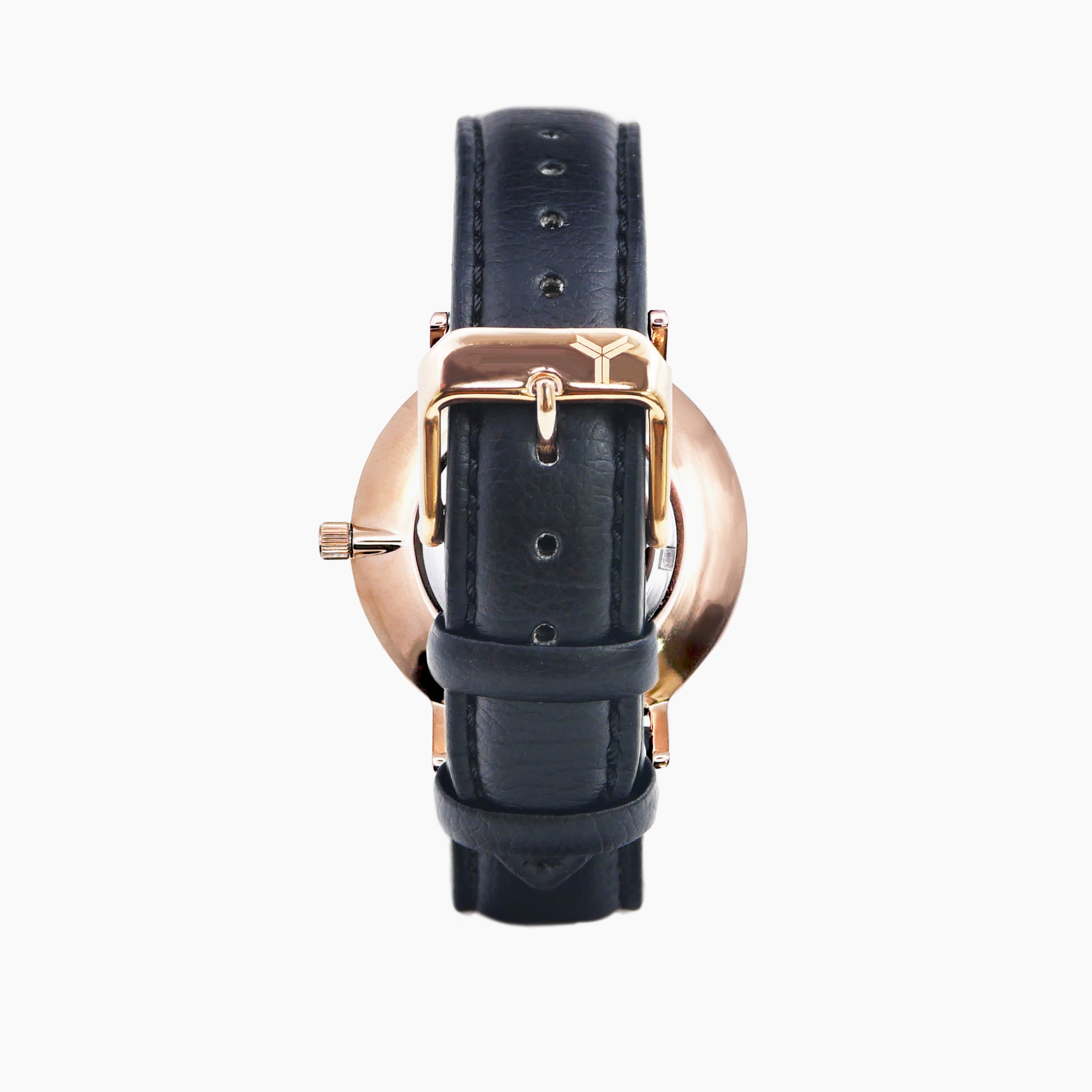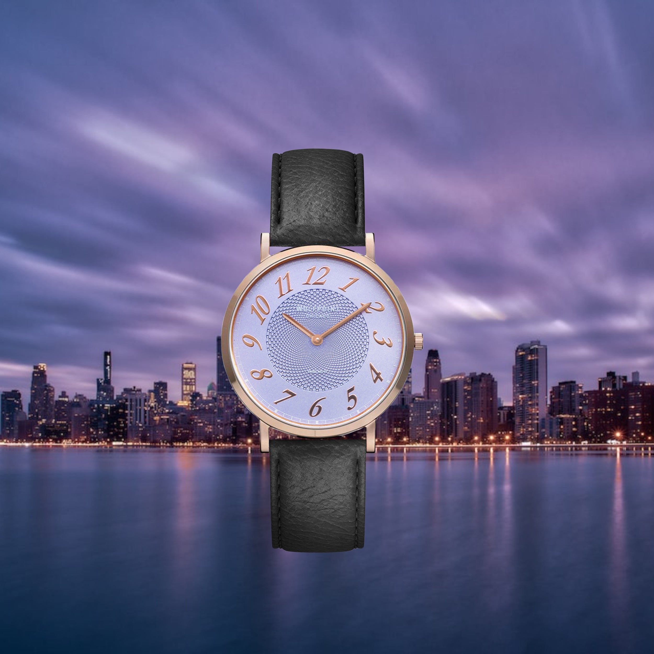 6.5mm thick and 36.5mm diameter. We engineered it to be as slim as possible. This two-hand watch can easily be the most versatile timepiece in your wardrobe, making it perfectly suited for a board meeting or Sunday brunch.