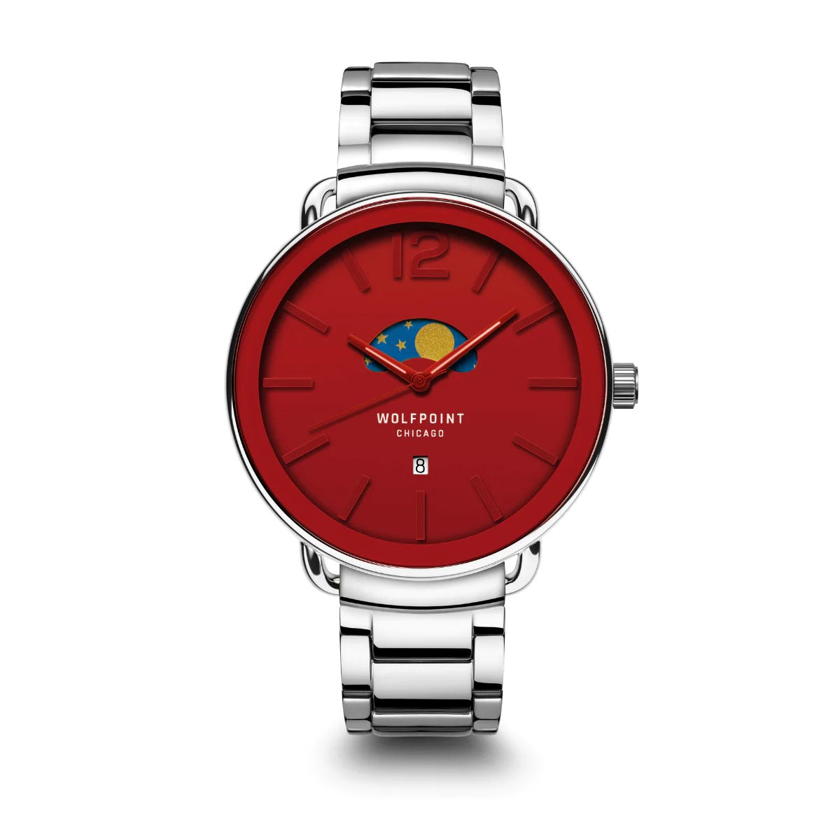 Made with 316L Stainless Steel. Designed to be both sturdy and comfortable. Interchangeable with a quick release spring bar, this strap was designed to compliment our Chicago Moon collection.