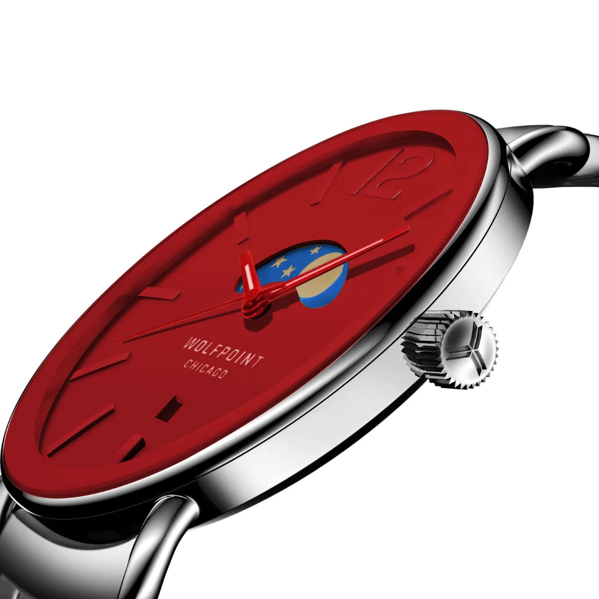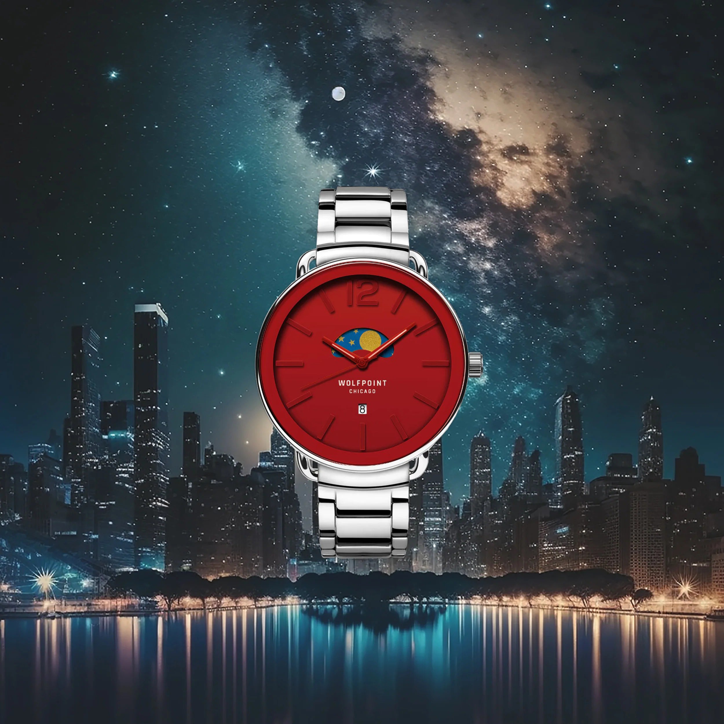 A work of public art in Millennium Park at the heart of Chicago. The sculpture, which is officially titled Cloud Gate, is one of the world’s largest permanent outdoor art installations, it weighs about 110 tons — roughly the same as 15 adult elephants. The stainless steel made monumental work was unveiled in 2004 and quickly became of the Chicago's most iconic sights. Our Moon collection bean shape moon phase window, is proudly inspired by this iconic sculpture of Chicago.